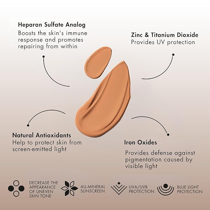 - Provides broad-spectrum UVA/UVB sun protection and protects skin against the damaging effects of blue light, including light-induced pigmentation