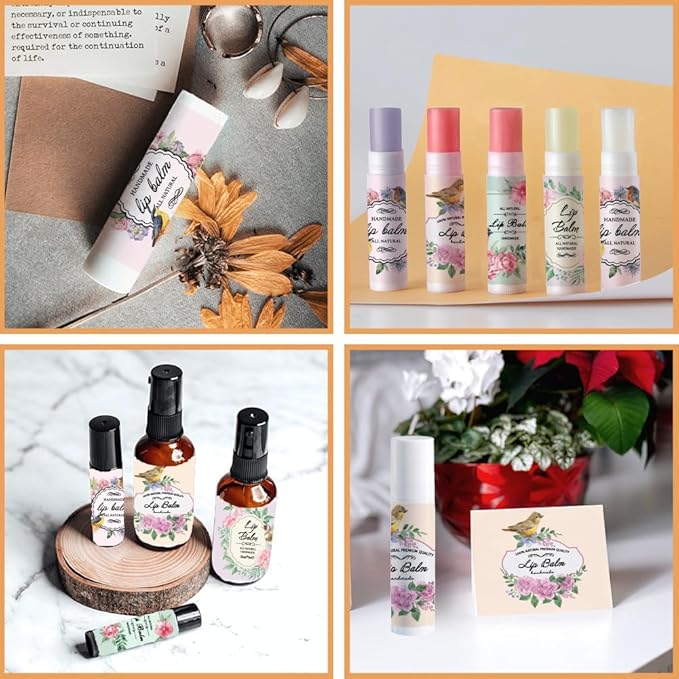 OLYCRAFT 100Pcs Self-Adhesive Lip Balm Tag Stickers 1.7x2.1 inch Waterproof Adhesive Label with Bird Patterns Rectangle Lipstick Tag Sticker for Lip Balm Container Tubes Lipstick Wrapping Decoration