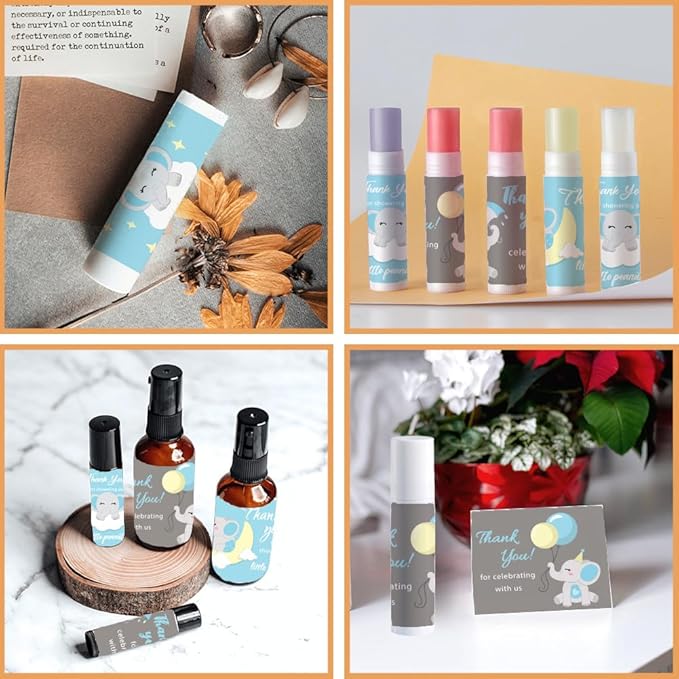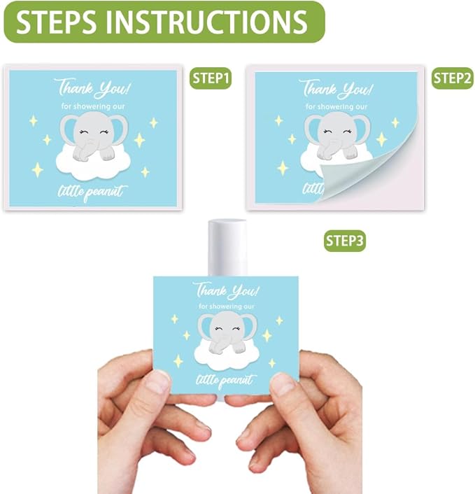 - Elephant Theme--These lip balm labels stickers are designed with cute elephant pattern and "Thank you for showering our little peanut" "Thank you for celebrating with us" words. Fine printing technology makes every pattern delicate and beautiful.