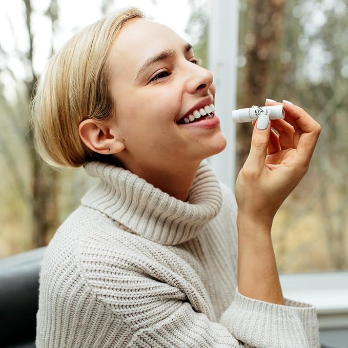OLYCRAFT 100Pcs 4 Style Lip Balm Label Sticker Word Labels Stickers Adhesive Lip Balm Label Sticker Plastic Lipstick Tag Stickers for Lip Balm Container Tubes 1.7x2.1 inch