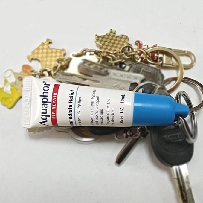 - Simply slide the top of your aquaphor lip balm into the cap and hang it on the keychain,take your lip balm with you on the go.