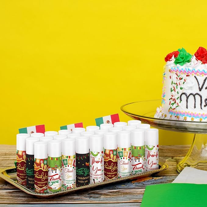 Dunzy 50 Pcs Thank You Gift Lip Balm Bulk Baby Shower Party Favors Bridal Shower Favor Lip Care with Assorted Fruit Flavors Thank You Lipstick for Guest Basket Gift Stuffer (Mexico Party)