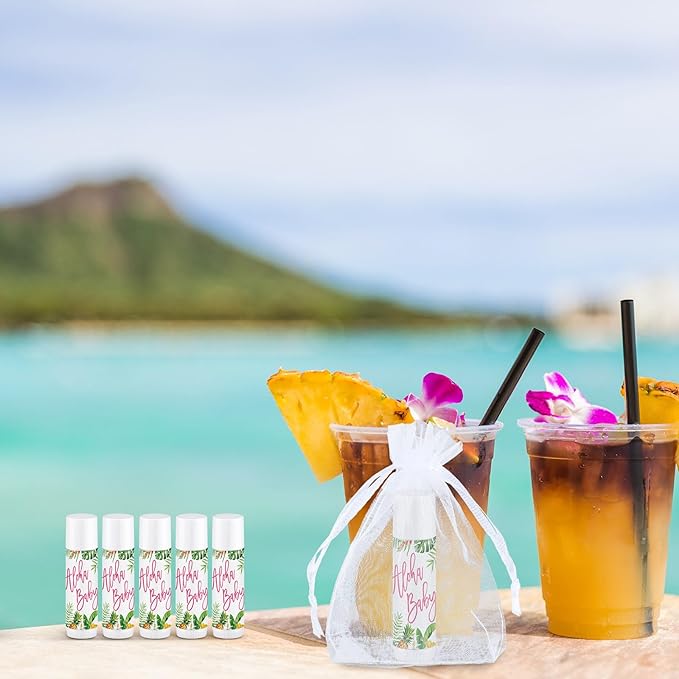 Demissle 50 Pcs Baby Shower Lip Balm Gift Set with 100 Pcs Organza Bags Baby Shower Party Favor for Guest Thank You Tag Rope Baby Shower Party Decoration Gender Reveal Souvenirs (Tropical)