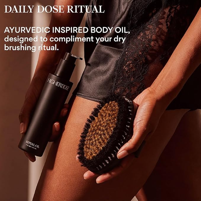 HigherDOSE Ritual Oil - Ayurvedic Daily Nourishing Body Oil for Dry Skin - Moisturizing Body Oil Enriched with Sea Buckthorn & Essential Oils to Deliver Nourished, Toned & Glowing Skin (5 Fl Oz)