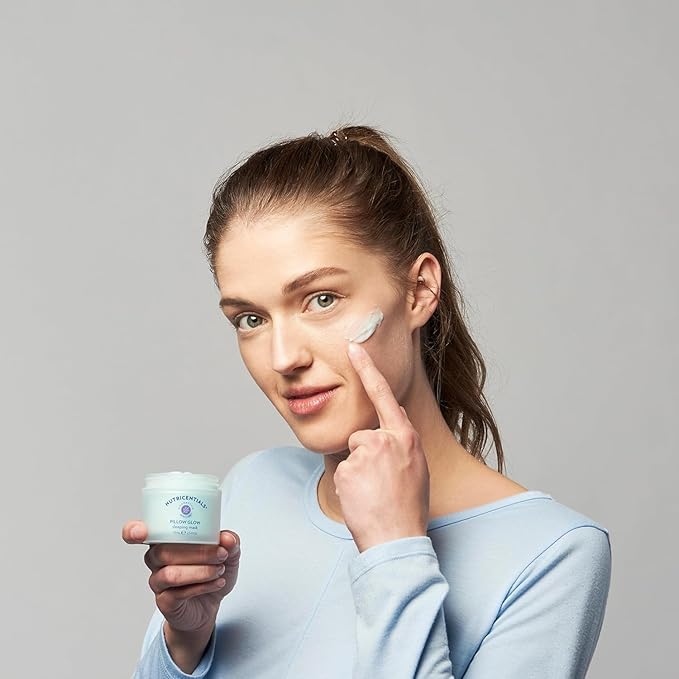 NuSkin NUTRICENTIALS Pillow Glow Sleeping Mask | Overnight Hydration | Bioadaptive Botanical Complex | Red Algae | Apple Extract | Deep Sea Water | Skin Glowing & Pore Minimizing | 2.5 Fl Oz | 1 Pack
