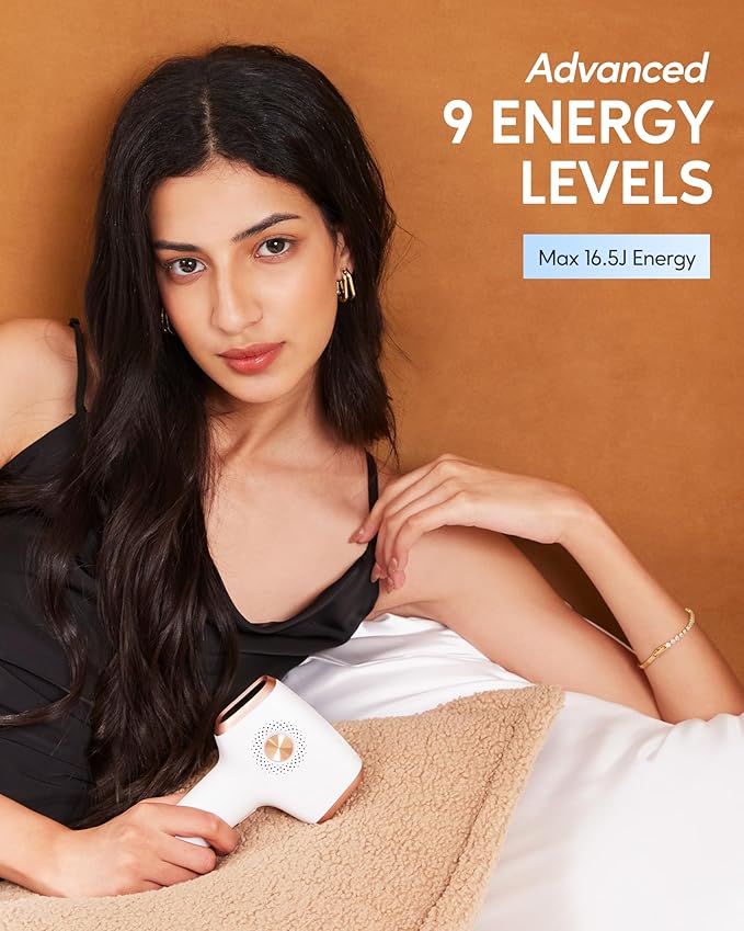 • 【Effective IPL Hair Removal】They zap away unwanted hairs at their roots, which significantly slows down regrowth for smoother skin. With 5J/cm² high energy and a 600nm wavelength, the device delivers light deeper into the hair follicles, effectively damaging them to reduce hair growth over time. This offers longer-lasting results compared to shaving or waxing.