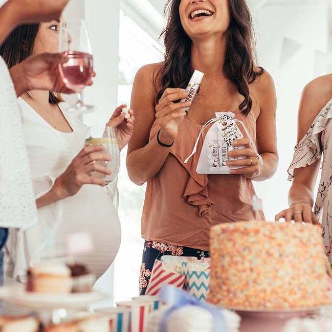 Demissle 50 Pcs Baby Shower Lip Balm Gift Set with 100 Pcs Organza Bags Baby Shower Party Favor for Guest Thank You Tag Rope Baby Shower Party Decoration Gender Reveal Souvenirs (Cowboy)