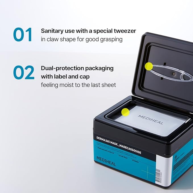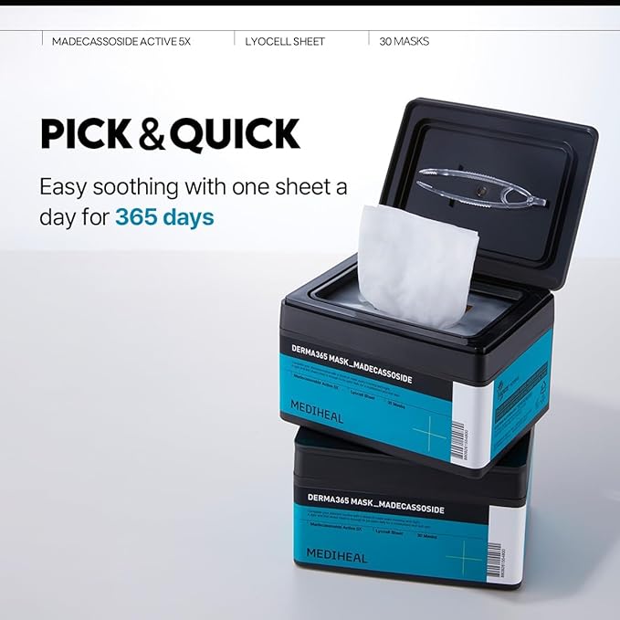 Mediheal Derma 365 Madecassoside Mask (30 Masks) - Daily Skin Care Mask for Deeply Comforting and Calming Skin with Madecassoside