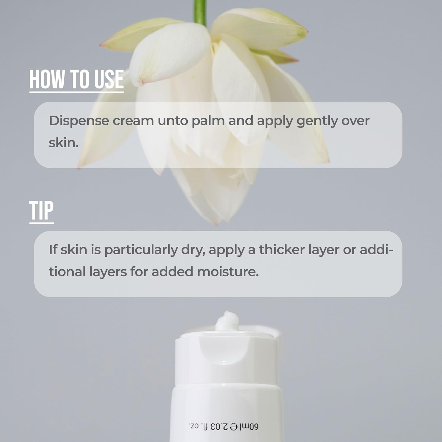 - Lightweight, non-greasy but hydrating: Lotus Cream applies unto skin lusciously, giving skin a hydration boost without leaving any greasy trail. Blends well with other skincare products and make up, making it truly a daily cream.