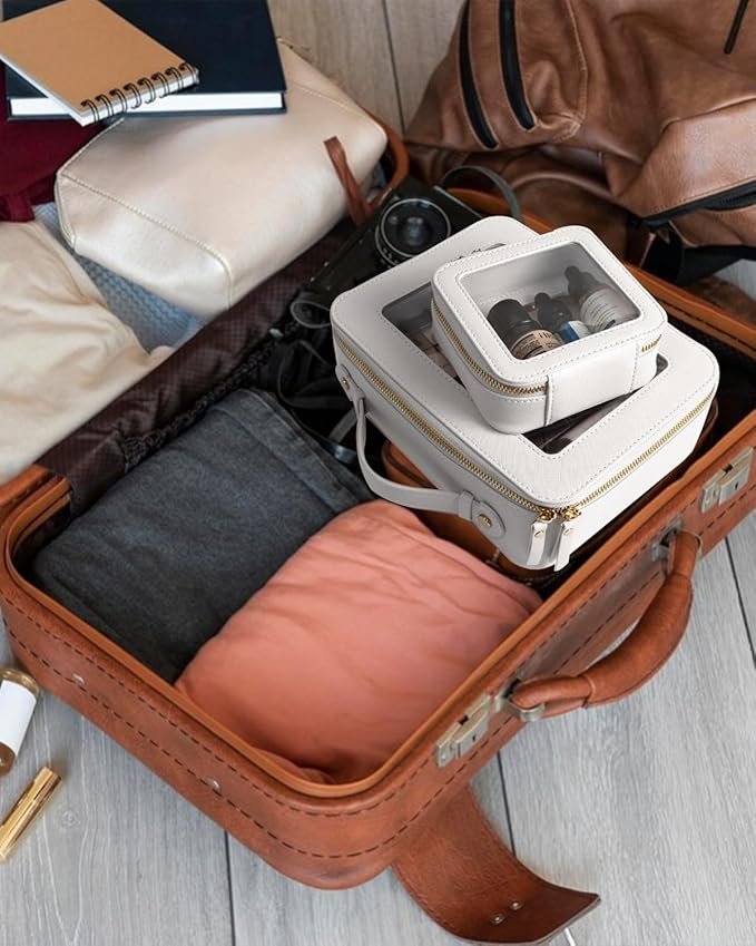 - Clear Design: Our clear toiletry bag set is sleek and minimalistic look for your makeup accessories collection. And is designed with a clear PVC window,all items are clear at a glance, and you can quickly choose the cosmetics you need. Large: 9.44“ x 6.1” x 2.7”, Mini: 5'' x 4.7'' x 2''