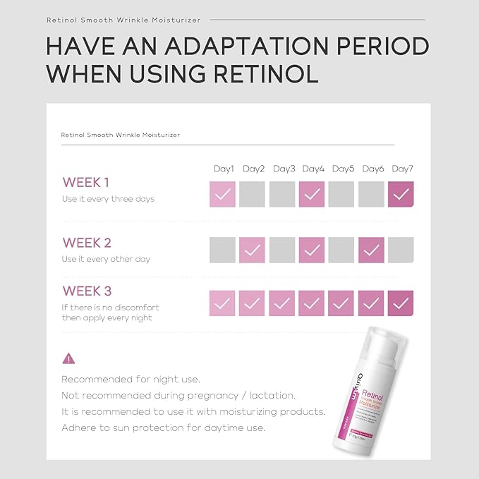 - 【Day & Night Moisturizer】Integrate Quiyum Retinol Anti Wrinkle Moisturizer for Face into your daily skincare regimen for both morning and evening use. Retinol acts as a crucial component in preventing premature aging, making it an essential part of your anti wrinkle routine. Suitable for all skin types and ages, Quiyum Retinol Face Moisturizer Set helps achieve a youthful appearance. For daytime use, pair with SPF 30 sunscreen.