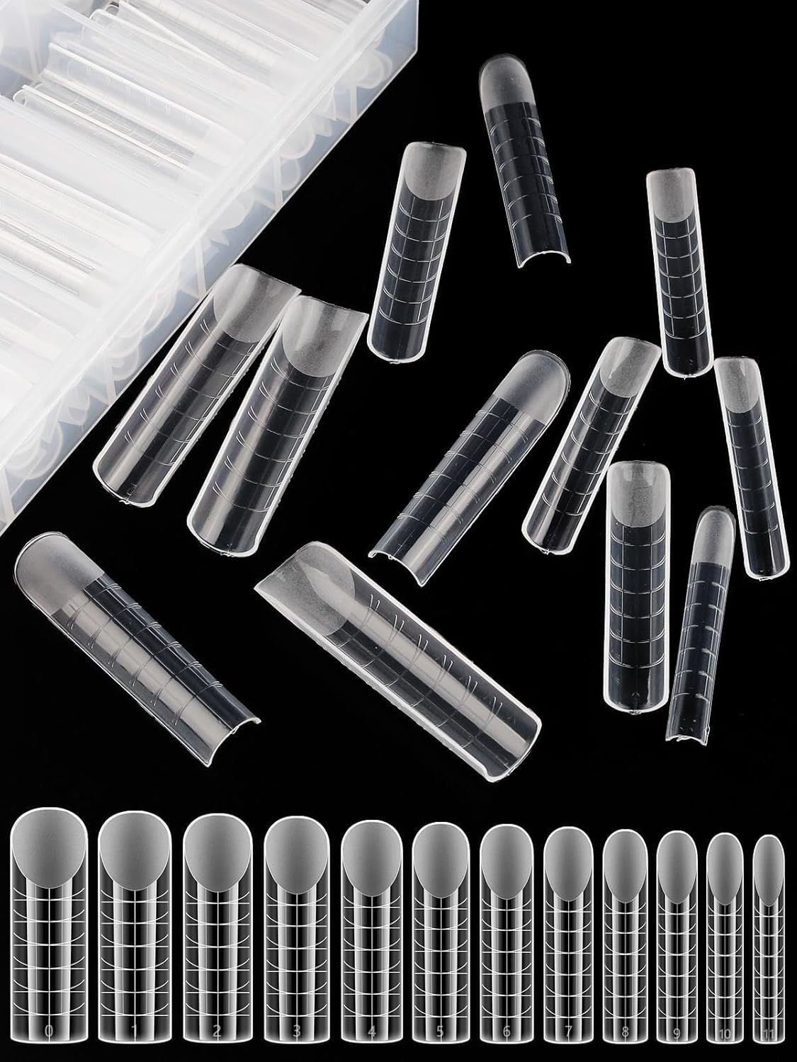 - 【Clearly Marked】 Each poly nail tips mold has curved scales and straight scales for your various nail extensions needs, making it easy to design and control the length or shape you want. Dual Nail Forms can be well groomed to your nail shape, perfect for painted clear nails and French tips.