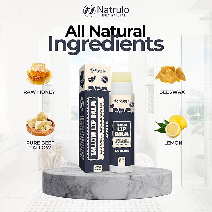 - INTENSELY HYDRATING FORMULA: Immerse your lips in moisture with our grass-fed organic beef tallow lip balm with lemon flavor. Crafted with natural fats, akin to those in human skin, it maintains your lips' moisture barrier for enduring hydration and velvety softness.