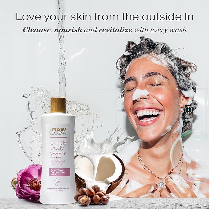 RAW SUGAR Simply Body Wash, Beach Rose + Coconut Milk + Shea (25 Fl Oz, Pack of 3) Sensitive Skin Bath Soap, Formulated without Sulfates & Parabens…