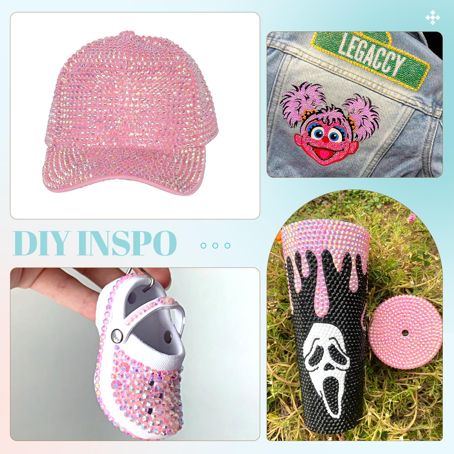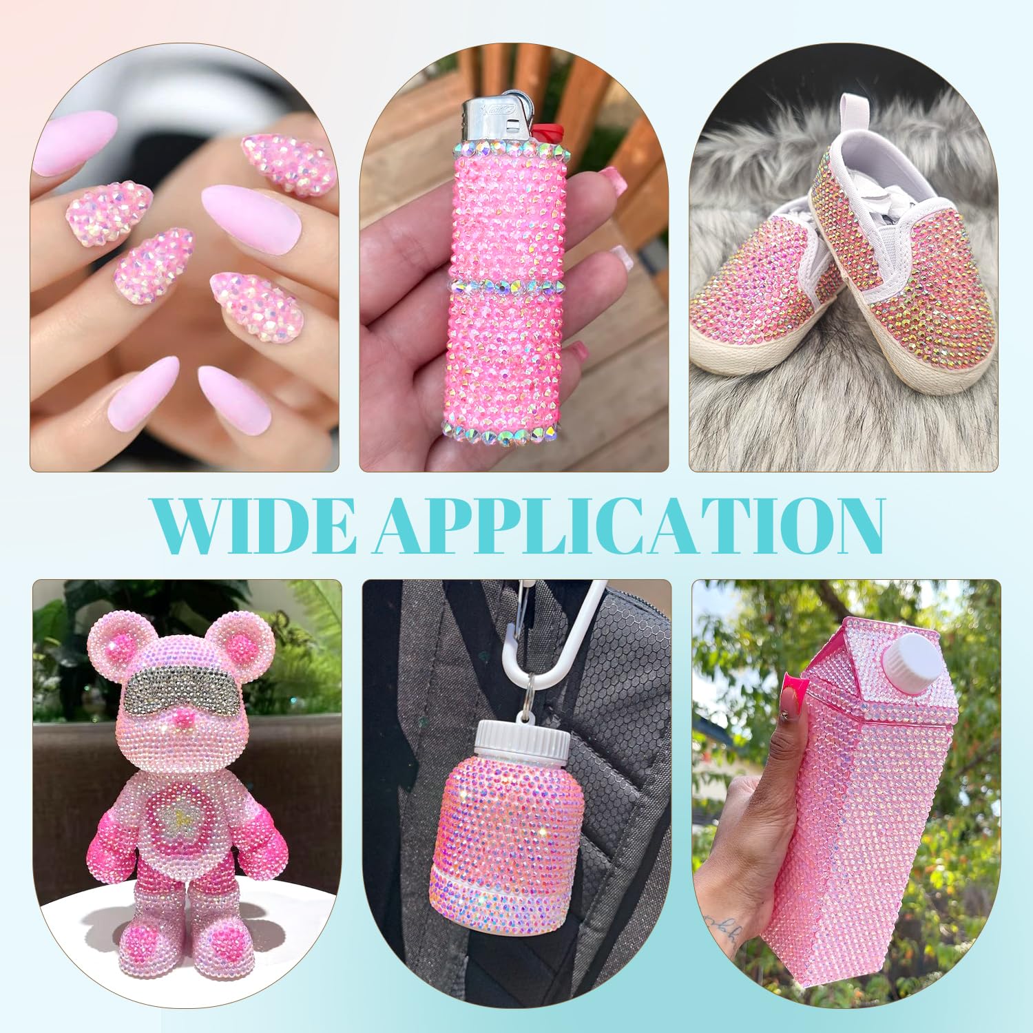 - 💎WIDE APPLICATION -- These sparkling iridescent resin crystals are perfect for creating dazzling looks. Use them for bedazzling DIY crafts like shoes, tumblers, mugs, bottles, phone cases, popsockets, scrapbooks, photo frames, diamond paintings, greeting cards, bags, glasses, guitars, keychains, hats, masks, hair clips, bracelets, wristbands, clothing, wedding dresses, and more. Apply it to what you want to bling!