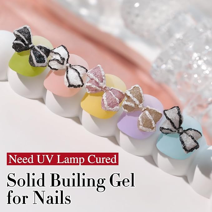 - Multifunctional Solid Building Gel: This solid building hard gel can be used for nail extensions, sculpting,carving, nail designs and stick decoration. It can also be used to apply gel tips and large nail charms/jewels as well as to make charms in silicone molds. Soft material can be kneaded into any shape or other decoration, allowing you to create various 3D nails art.