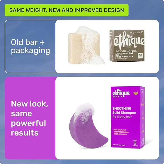Ethique Smoothing Shampoo Bar for frizzy hair with Coconut Butter - Plastic-Free, Cruelty-Free, Vegan, 3.88 oz - Formerly Frizz Wrangler