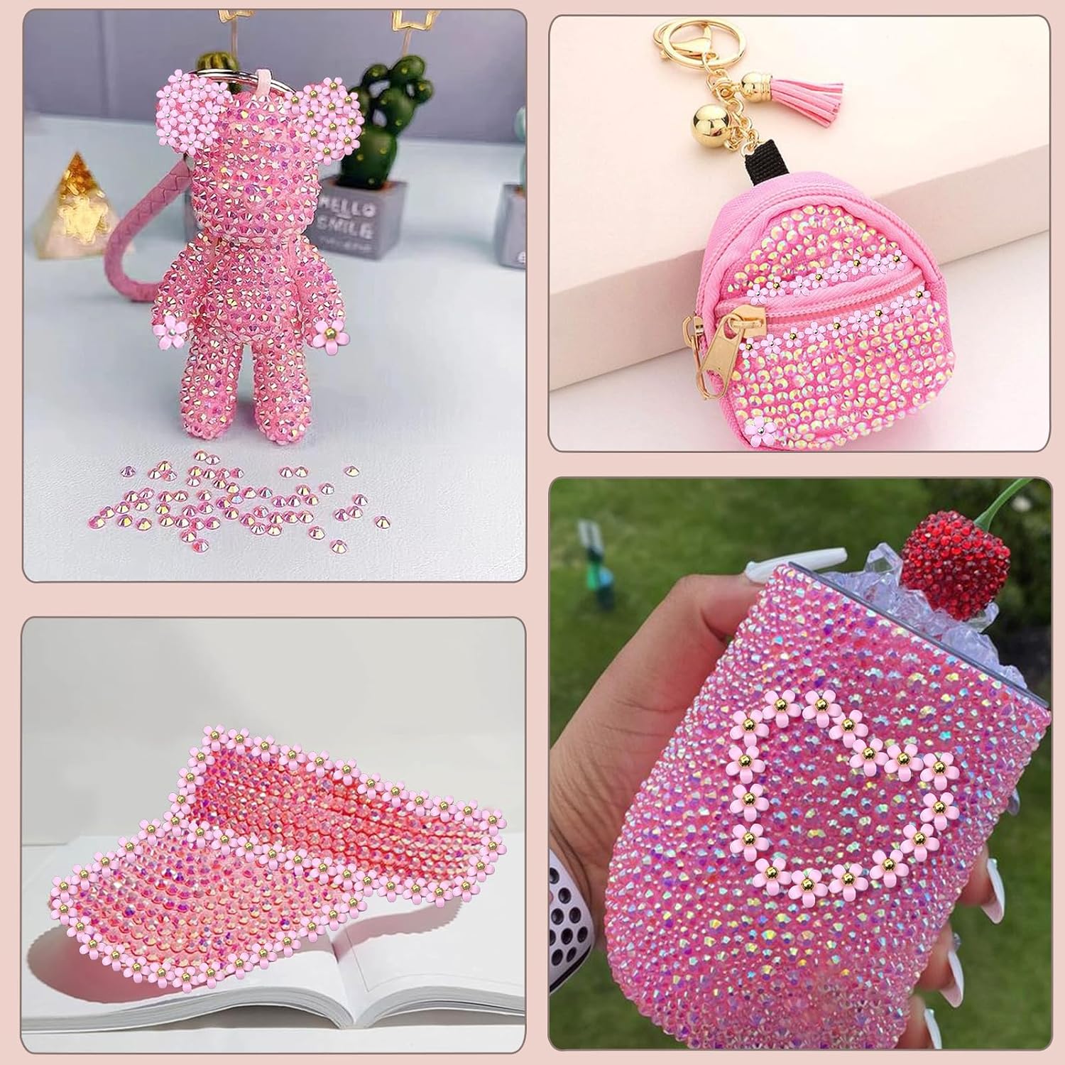 Flatback Nail Art Rhinestones Flower Nail Charms with AB Rhinestones Glue Gel Pink Nail Supplies Accessories Gems Resin Rhinestones for Bedazzling Crafting & Women Nails Design Decor