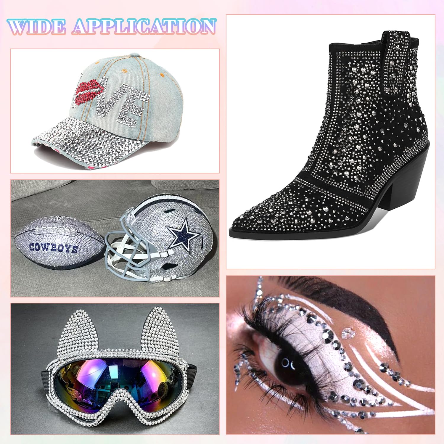 - WIDE APPLICATION -- These sparkling iridescent resin rhinestones are perfect for creating dazzling looks. Use them for bedazzling crafts like shoes, tumblers, mugs, bottles, phonecases, bags, glasses, hats, masks, clothing, clothes or nail art and more