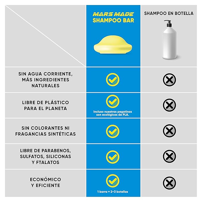 - PLEDGE TO QUALITY. We love hearing how much customers appreciate the effectiveness of Mars Made Shampoo Bars! Our bottle-free bars provide luscious locks and are equivalent to at least 2 bottles of liquid shampoo. Mars Made proudly supports adults with special needs through the production and packaging of every product.