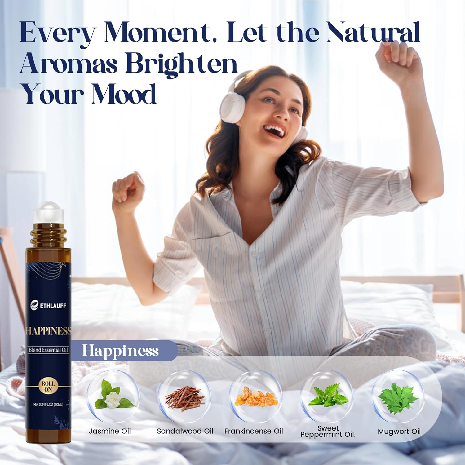 Essential Oil Roller Set, (Sleep, Relax, Happiness) Aromatherapy Roll On for Body Skin Care, Home - Natural Aromatherapy Gift, Relaxtion Gift, Stress Relief Gift for Women and Men