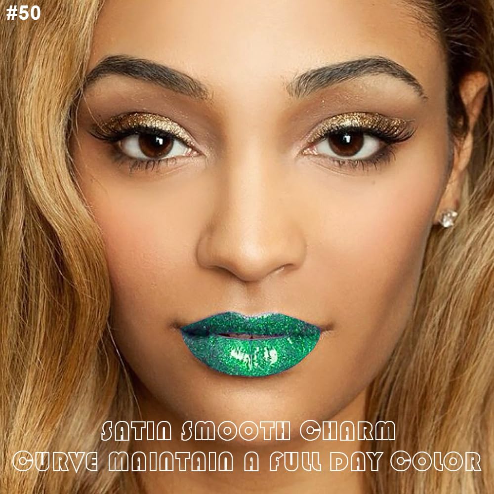 evpct 2Pcs Green Shimmer Glitter Shiny Liquid Lipstick Lip Gloss Stain and Retractable Lip Liner Makeup Set for Women Long Lasting Waterproof 24 Hours Lipstick labial mate larga duracion 24 50#