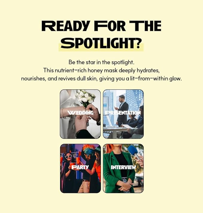- đź’– Instantly Boost Radiance & Hydration : Prepping for special event? This nutrient-rich honey mask deeply hydrates, nourishes, and revives dull skin, giving you a lit-from-within glow.