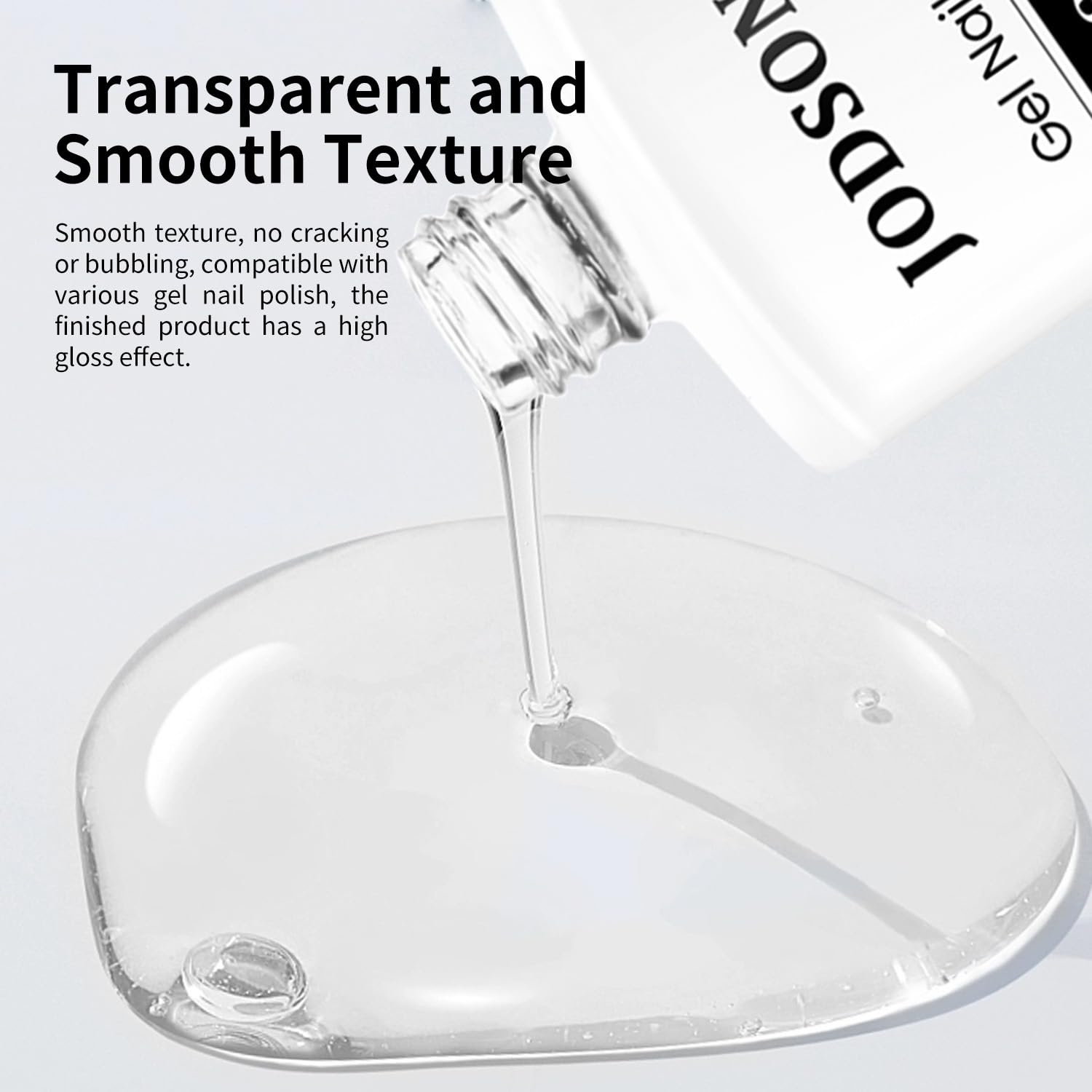 JODSONE 2 Bottles 18ml Top Coat Base Coat Gel Polish Set Compatible for Nail Salon Bright Surface, Girl Gift and At Home DIY Need U V Lamp Curing