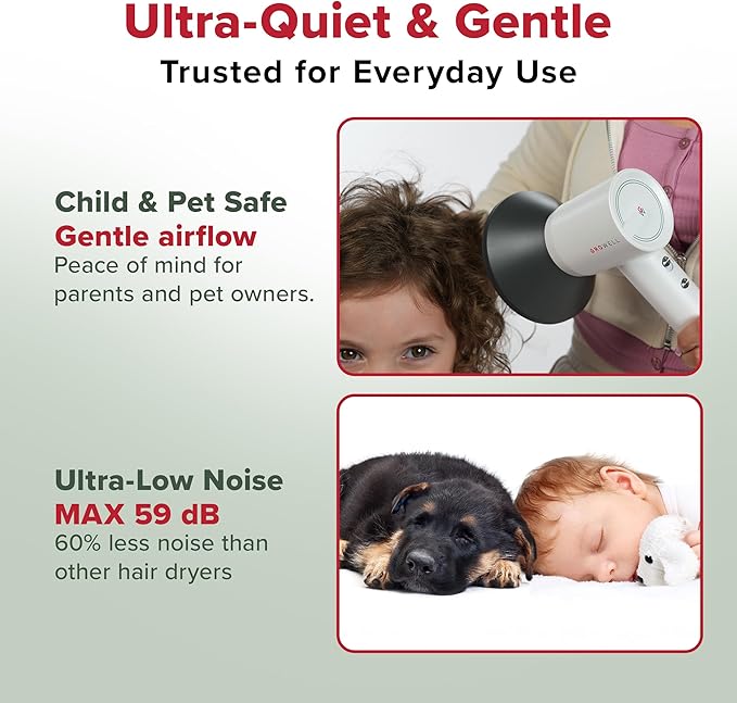 GroWell Ionic Hair Dryer, High-Speed Brushless Motor Professional Blow Dryer for Fast Drying, Low Noise, Lightweight, Compact Hair-Dryer with Diffuser for Curly Hair