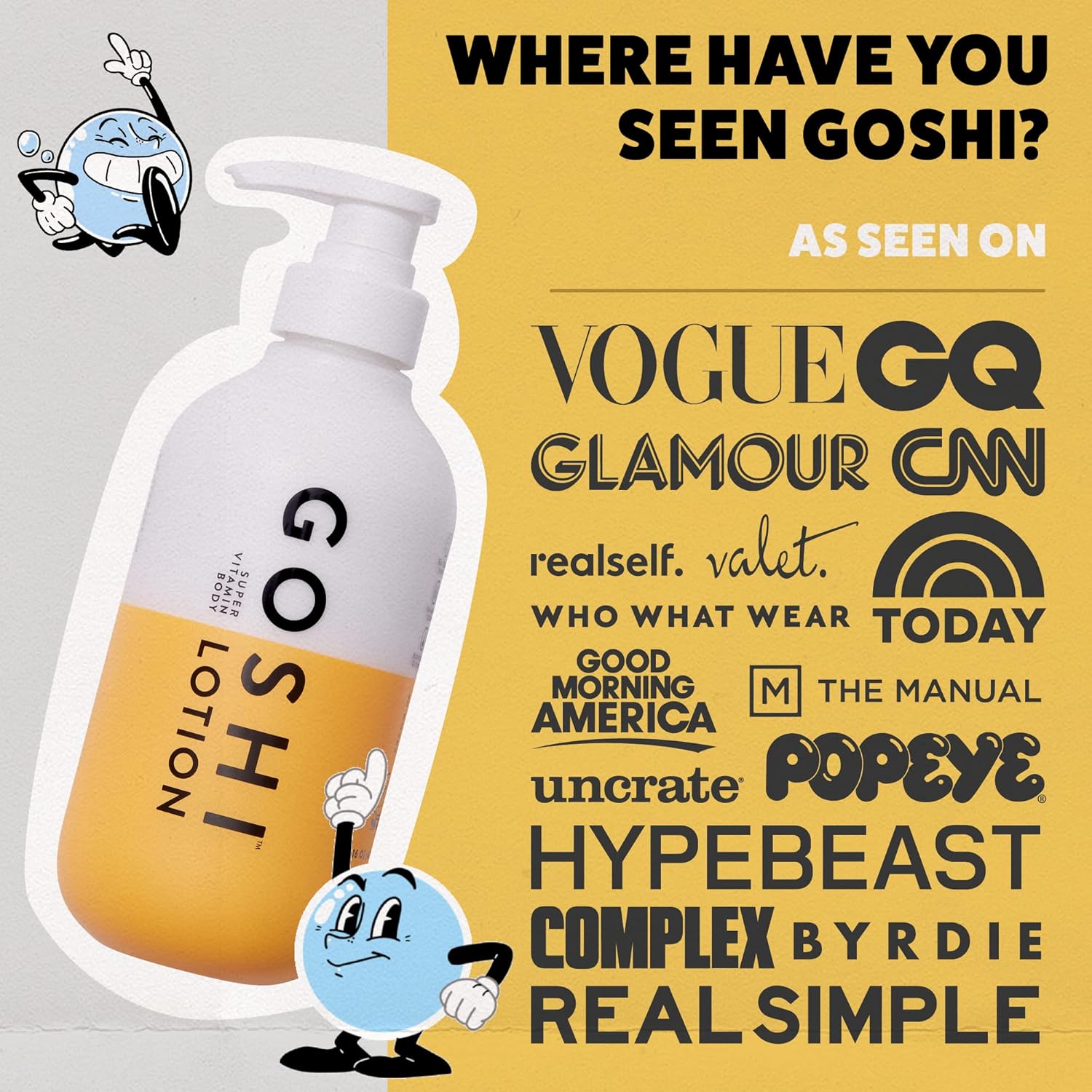 - The GOSHI Skin System Difference: The brand behind the beloved exfoliating towel now has a super vitamin lotion intended to nourish and rejuvenate the skin. Our new approach in cleansing and supplementing is a much-needed update to a product category that hasn’t been updated since the 1800s.