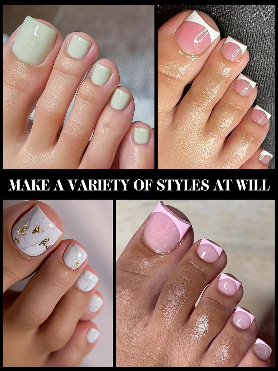 - 【Easy to Use】Poly gel nail kit for toes are artificial toenail forms, used as the nail mold. No glue needed, just brush the acrylic/poly gel into the forms and then place on the nail plate, hold on for a few seconds and cure it. Easy to shape, and provide full coverage for the entire toenail, allowing for seamless and professional-looking nail extensions.