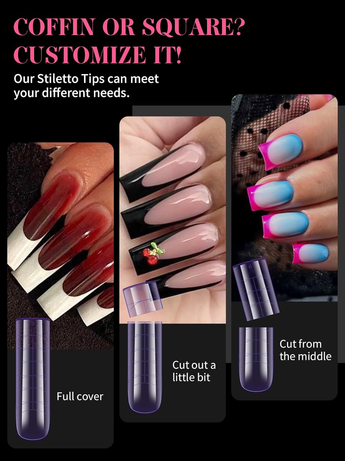 - 【Sturdy No C Curve Gel Nail Forms】Reusable extra long nail molds are made with high quality material, which is strong, tough, and reusable, providing you with a different lengths nail art experience that lasts.This artificial nails forms protective sleeve has a small handle on both sides, which is convenient for constructing gel nail extension nails, and will not stick to your hands, and can be easily removed after application.