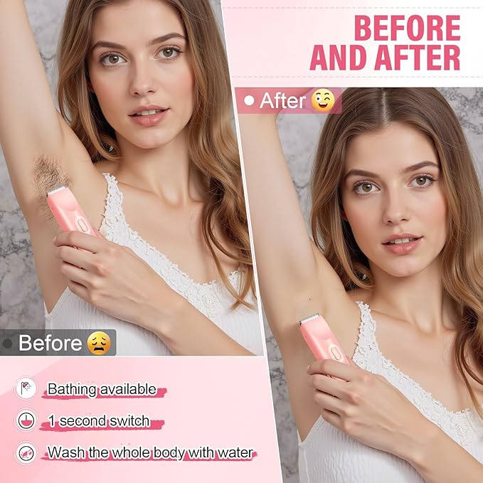 - 🧸Skin-friendly Ceramic Blades - Say goodbye to razor burns and bumps! The Women's Electric Bikini Shaver uses aviation-grade hypoallergenic ceramic blades to provide a smooth and gentle experience even on the most sensitive areas