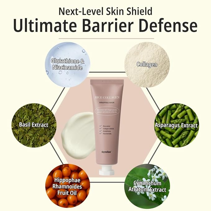 daymellow Rice Collagen Wrapping Mask 2.36 fl. oz / 70ml – Korean Peel-Off Facial Mask with Hydrolyzed Collagen, Hydrating & Firming, Overnight Gentle Pore Tightening for Glowing Glass Skin