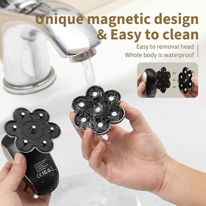 - IPX7 Waterproof Wet,Dry Rotary Shavers:IPX7 waterproof design caters for both wet and dry use, supporting shaving with foam or water. No longer worry about using it in the bathroom, the electric head shaver can complete the trimming task efficiently. Use this electric head shaver under running water and enjoy shaving in the shower