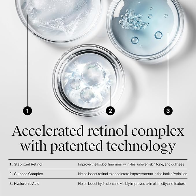 - This facial moisturizer with an accelerated retinol complex visibly renews the look of skin texture, evens tone, and smooths look of fine lines. Suitable for daily use, this face cream is formulated without parabens, mineral oil, and dyes
