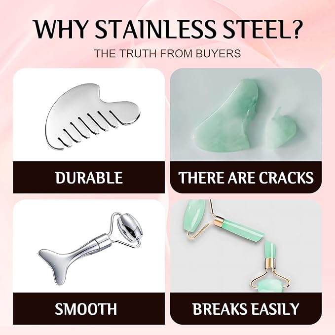 - 【Sturdy And Durable】This gua sha tool for face and stainless steel face roller are made entirely of metal, offering a cooling, refreshing feel that elevates your skincare routine. Ideal for those who love high-quality face massager tools