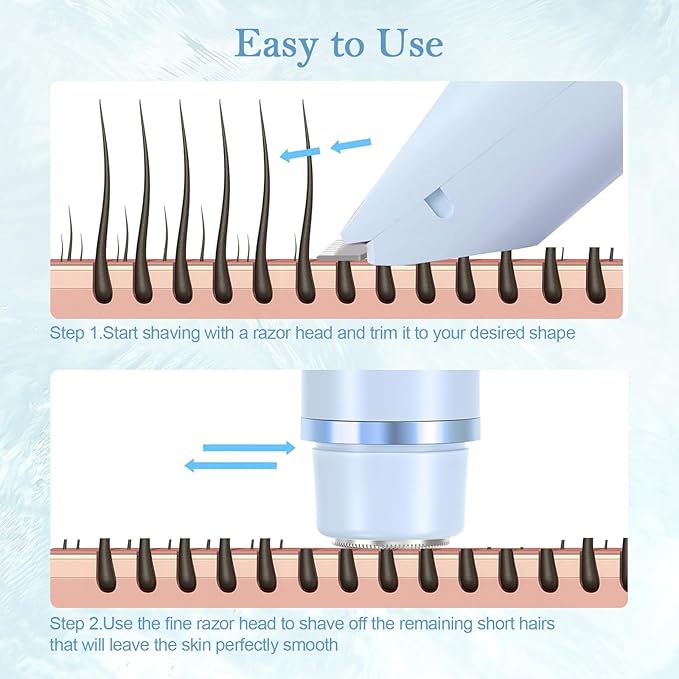 - đăSafe and Easy to Use, Perfect GiftăThis body hair trimmer is innovatively designed with a non-slip handle and ergonomic design, with a highly sensitive head that precisely fits the curvature of the body, whether it's for smooth leg care, underarm grooming or safe shaving of intimate areas. This bikini razors for women is an ideal gift for girlfriends, partners, mothers or friends