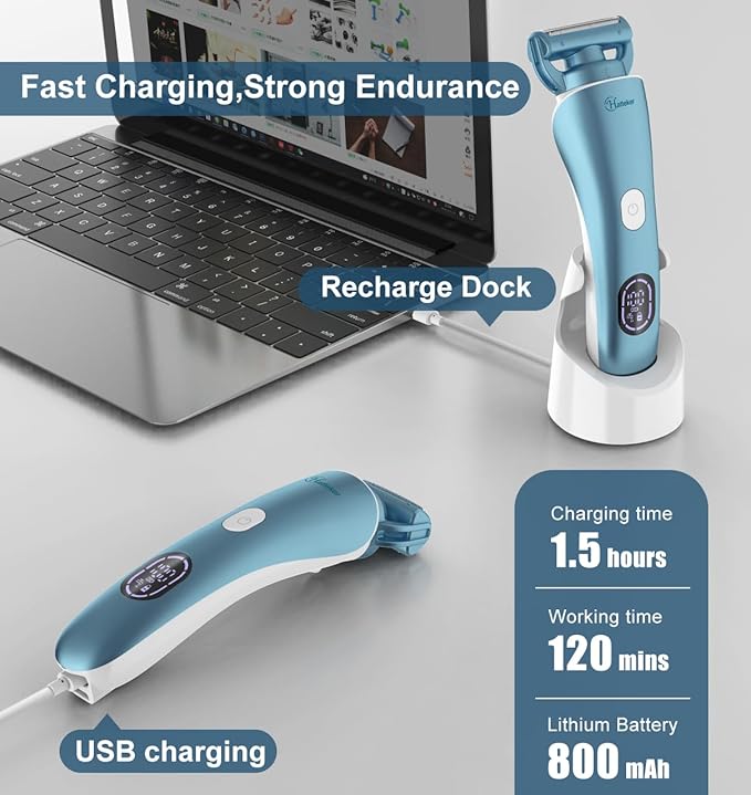 - Rechargeable & Portable:This bikini trimmer comes with a convenient USB charging cable, providing quick and easy charging. With just 1.5 hours of charging time, enjoy up to 90 minutes of cordless use.