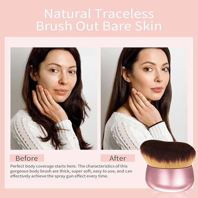 - 【FOR FLAWLESS LEG & BODY MAKEUP】The soft pretty big brush head and ergonomic handle provide your skin with a chocolate-smooth application experience. Seamlessly blend self tanner for evenly disperse product, hugging every curve for flawless looking coverage across your décolleté, arms, back and legs with no mess. Specifically engineered body brush to enhance the way you apply Body Coverage or any of your favorite body makeup products