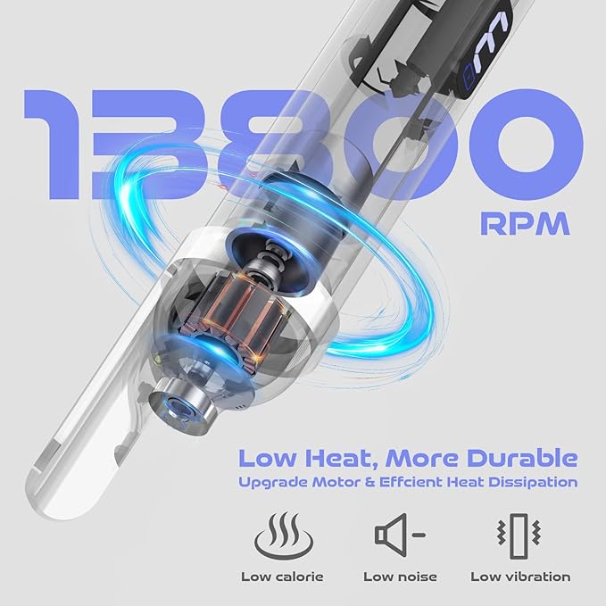 - 【Controller And Cable In One】Cable comes equipped with a LED speed display, speed control buttons, and a rotation direction switch. Nail grinder for human features a robust coreless motor engineered, electric nail drill kit is up to 13800 RPM and ow-noise operation, ensure efficient and rapid trimming, polishing, and care.