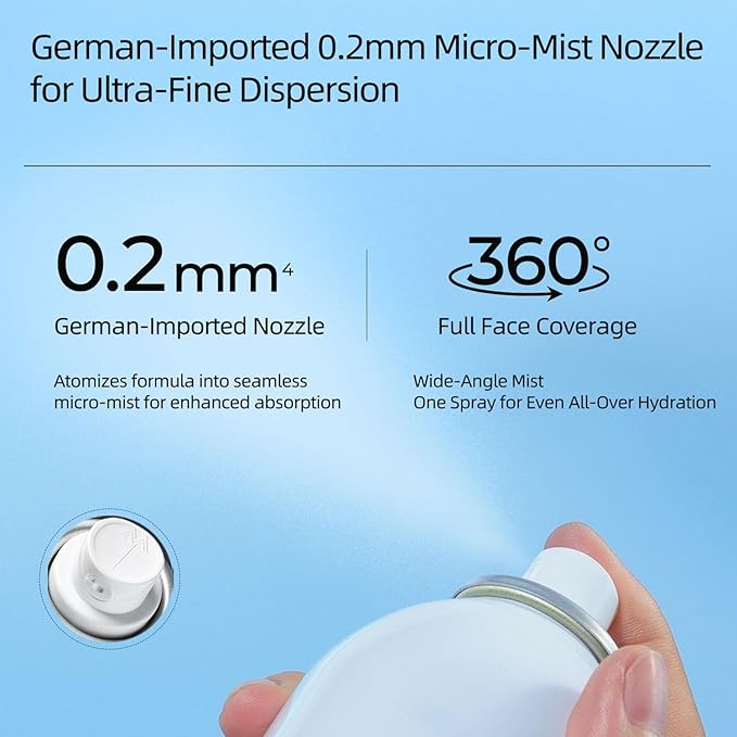 - Hold the face mist 15-20 cm from your face, spray with eyes closed, and tilt your head to absorb more moisture. Gently tap with fingertips, allow to absorb, then pat dry. This versatile hydrating face mist is suitable for body care too.